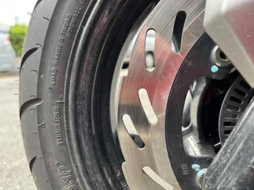 換下來主要的原因是原廠來令片雨天制動力的衰退會比較明顯,可能是因為溫度起不來的緣故,導致煞車力道變小、拉桿吃得更深,每次下雨的時候都覺得不是很有信心。