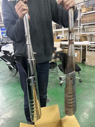 新的排氣管亮晶晶的真的是太賞心悅目了,看來我的娃娃可以再戰10年了,原車主的排氣管也不知道買來有沒有換過,有沒有可能從2007年用到現在呢?整個鏽到不行,聲音像敲破銅爛鐵一樣,還比某些重機的原廠管大聲。 來看一下新舊對比:
