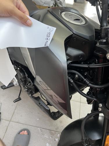 可能是摩托車線條複雜,所以犀牛皮沒有賣整塊的,光是油箱就拆成了左右上方,左右側面,左右下方共6塊,這樣買下來隨便都要破三千,以CP來算實在是不高。幸好版型算準確,雖然不是滿版仍有留3mm左右的邊角沒貼到,但用料是好的稍微彌補了遺憾,貼犀牛皮最忌諱的就是心急遇到邊角要善用材料的特性平坦處拉伸在邊角不要拉過頭避免擠料突出,這種東西只能多練習,還有多噴肥皂水,避免太快黏住導致犀牛皮受力不均。