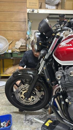 需要注意的是:更換CB400前土除,必須要先下前輪,再下其中一邊的前叉,才可以把土除拆下來,非常之麻煩,我自己嘗試DIY直接抽出原廠土除,沒差點折斷,只能乘保養時下前輪下前叉才能下前土除。我的經驗是這樣,如果你的前土除可以鬆螺絲就抽得出來,我羨慕你。