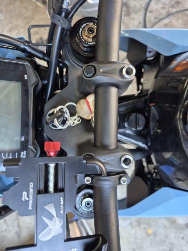 內附兩罐一公升5w的避震油,安裝很快,半天就完成了,前叉的支撐力比原廠好,這個阻尼棒是一壓一伸的,所以原廠下座的調整鈕就被廢除了。