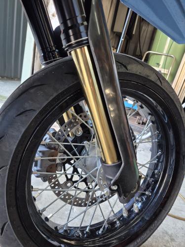 拿到手過了半個月才裝上,想說前叉都拆了,那就把內管拿去鍍鈦,下座拿去陽極黑,所以才拖了那麼久,