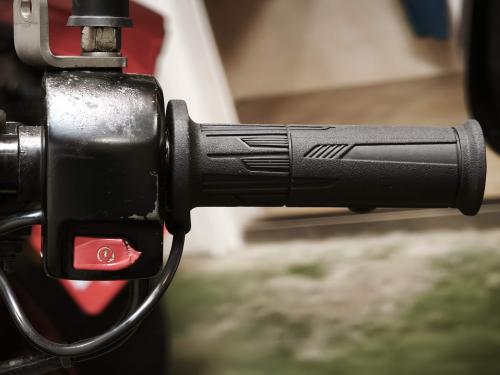 手把握感適中、量測直徑是31.6mm、接近上述原裝品,之前此車裝ATV通用的加熱手把、直徑是35.7mm、握感就不好。