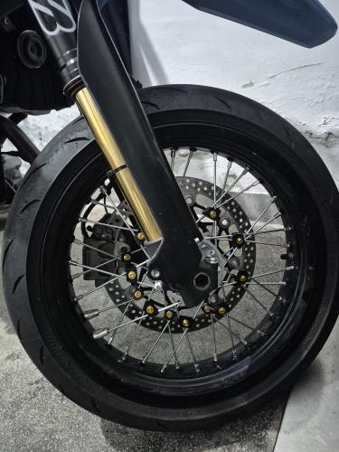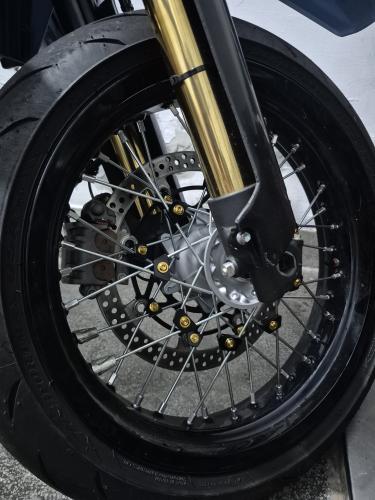 無聊翻到的,DR-Z 400SM是化油器上一款的,看看照片,輪框和新款的DR-Z4SM似乎一樣,就買回來試試看,一樣可以裝,只是我把原來附的螺絲螺母換成鈦合金。